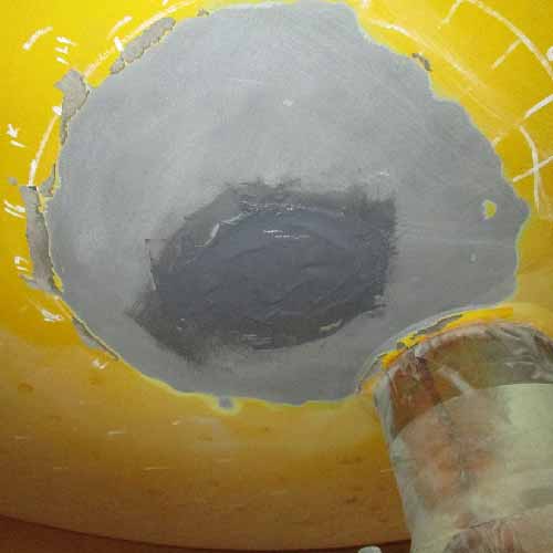 5- با استفاده از کاردک، لیسه یا سایر ابزارهای دستی، خمیر آمادهشده را روی سطح فلزی اعمال کنید.